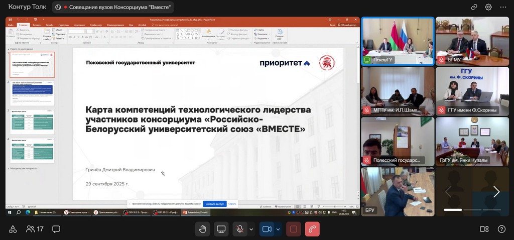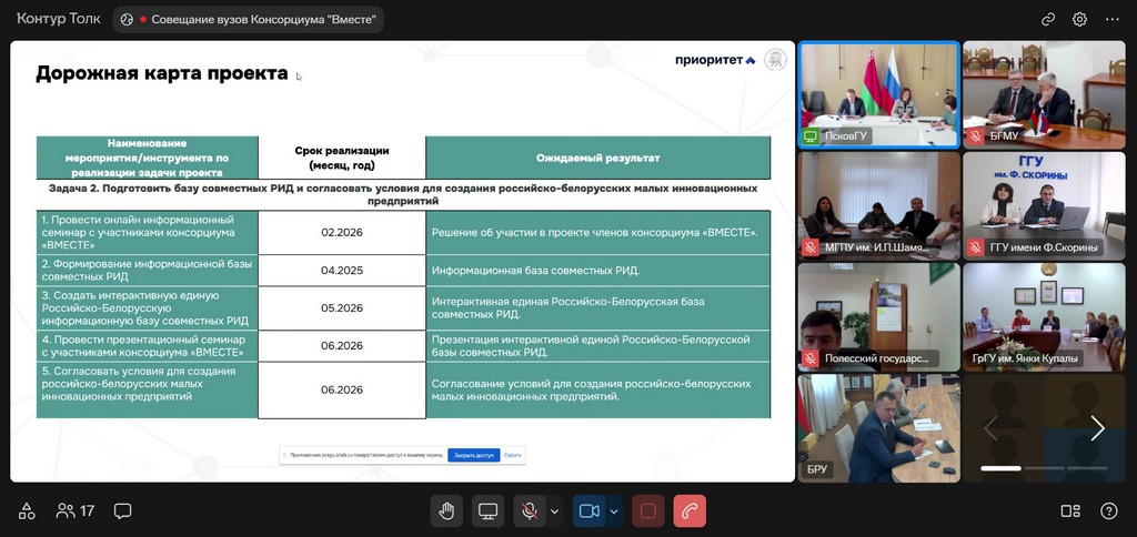 29 сентября представители ГГУ имени Ф. Скорины приняли участие в онлайн-совещании вузов – участников Консорциума «Российско-Белорусский союз «ВМЕСТЕ».