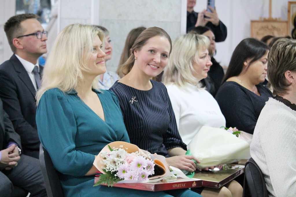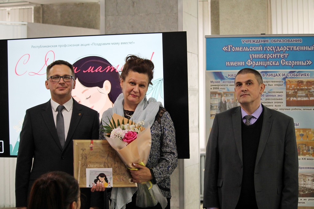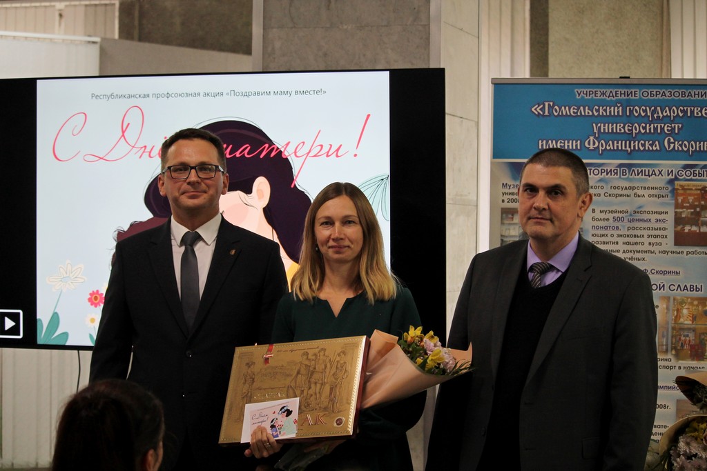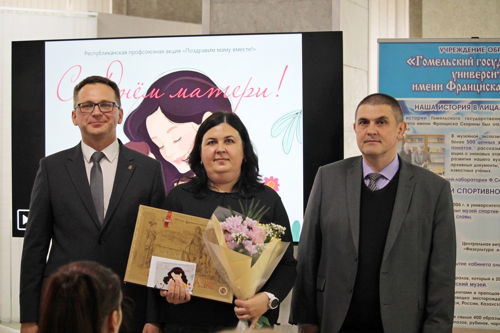 В зале прозвучали музыкальные номера от студенческого клуба, а торжественную атмосферу дополнили цветы, конфеты и сюрпризы от ректората и профсоюзной организации.