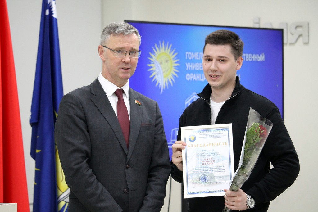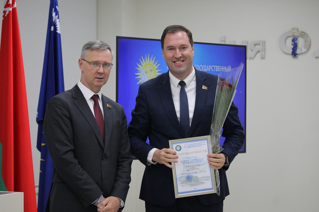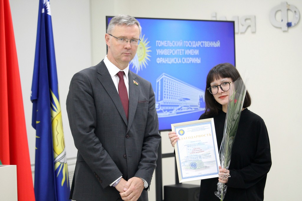 Благодарность за эффективную организацию работы, высокую интенсивность труда в период работы приемной комиссии, проведение вступительных испытаний, качественное консультирование абитуриентов и их родителей объявлена технику центра информационных технологий Жанне Деркач, секретарю кафедры экономической информатики, учета и коммерции Полине Евсеенко, доценту кафедры математических проблем управления и информатики Владимиру Короткевичу, преподавателю-стажеру кафедры белорусской литературы Анастасии Мигуре, секретарю кафедры гражданско-правовых дисциплин Юлии Покормяхо, старшему преподавателю кафедры истории Беларуси Станиславу Тыкуну.