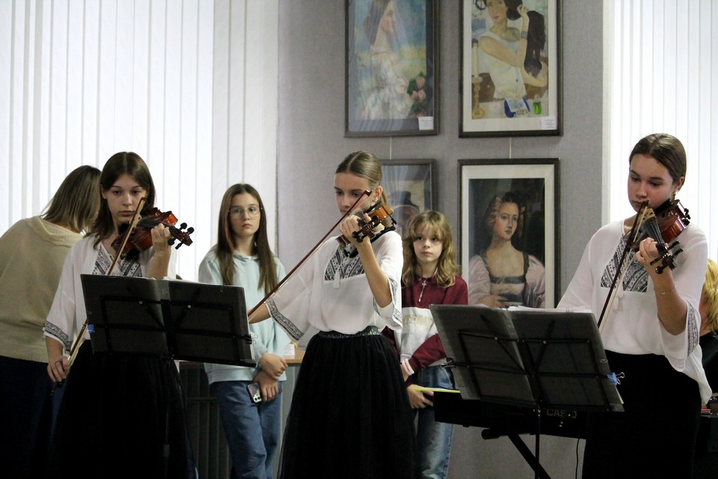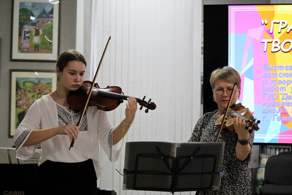 Началом арт-события стало выступление старшей группы образцового ансамбля скрипачей «Шутка» ГУО «Детская школа искусств г. Гомеля» (руководитель – Людмила Кнопач, концертмейстер – Елена Мягкова).