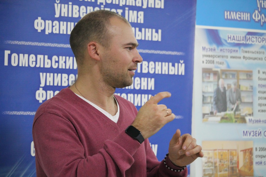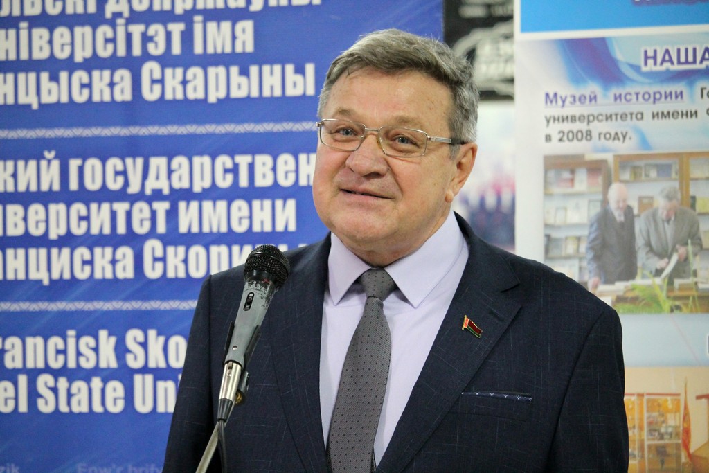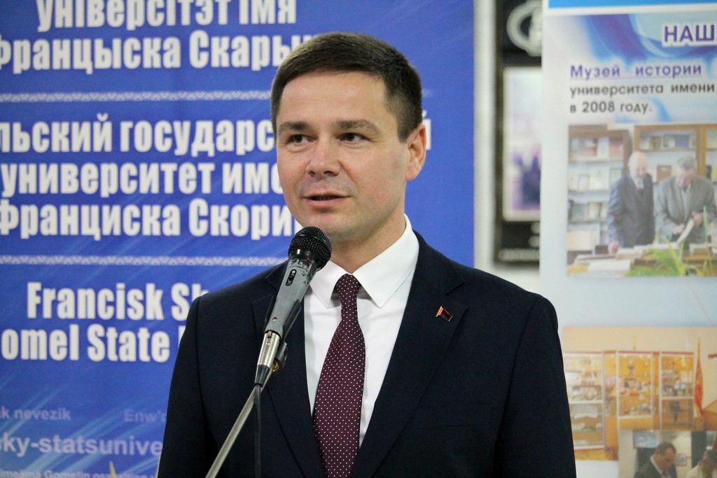 С приветственным словом к посетителям вернисажа обратился проректор по идеологической и воспитательной работе Дмитрий Ходанович. В своей речи Дмитрий Александрович подчеркнул важность сотрудничества университета с художественной школой, поздравил коллектив с юбилеем, а также пожелал новых творческих успехов и вдохновения. С открытием выставки собравшихся поздравил и директор ГУО «Детская художественная школа искусств г. Гомеля» Владимир Осипов.