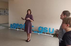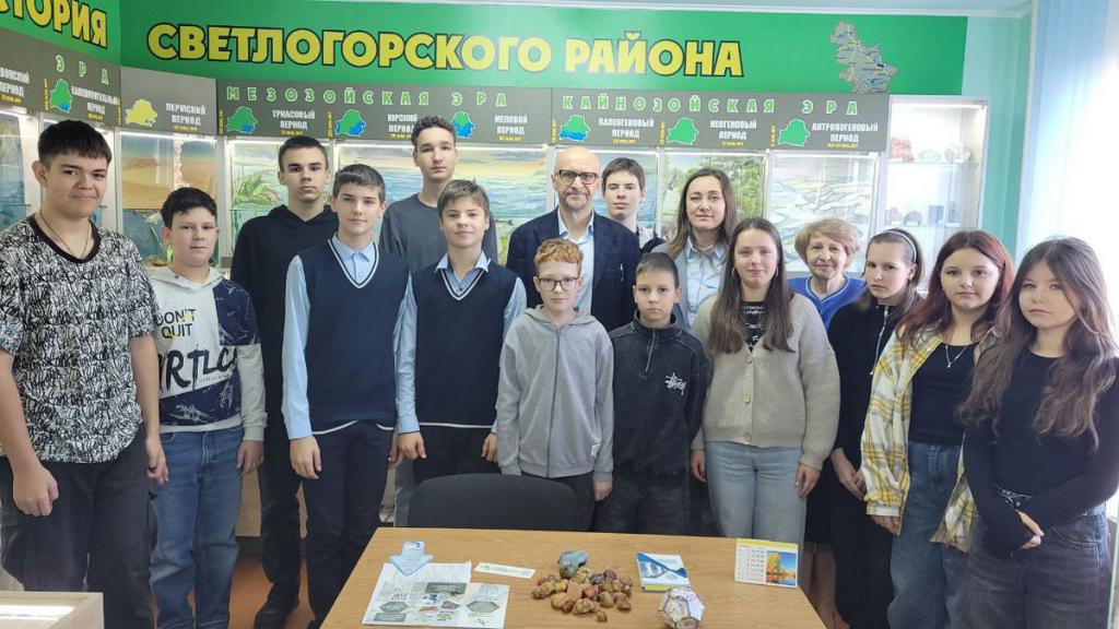 Еще одна профориентационная встреча прошла в г. Светлогорске. Декан геолого-географического факультета С.В. Андрушко и заведующей кафедрой геологии и географии А.П. Гусев посетили в период каникул выпускников школ города, которые собрались в ГУО « Центр творчества детей и молодежи «Ювента». Учащимся рассказали об особенностях вступительных испытаний на факультет, специальностях и местах трудоустройства после окончания обучения. Представители факультета посетили ОПИ «Геологический» и встретились с командой юных геологов «Агат», геологический музей центра.
