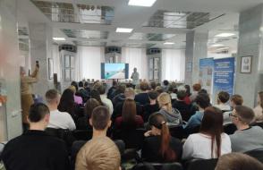 Лекцию «Про динозавров» прочитал заведующий кафедрой геологии и географии А.П. Гусев. Он познакомил присутствующих с доисторическими животными, населявшими нашу планету в разные эпохи геологического развития.