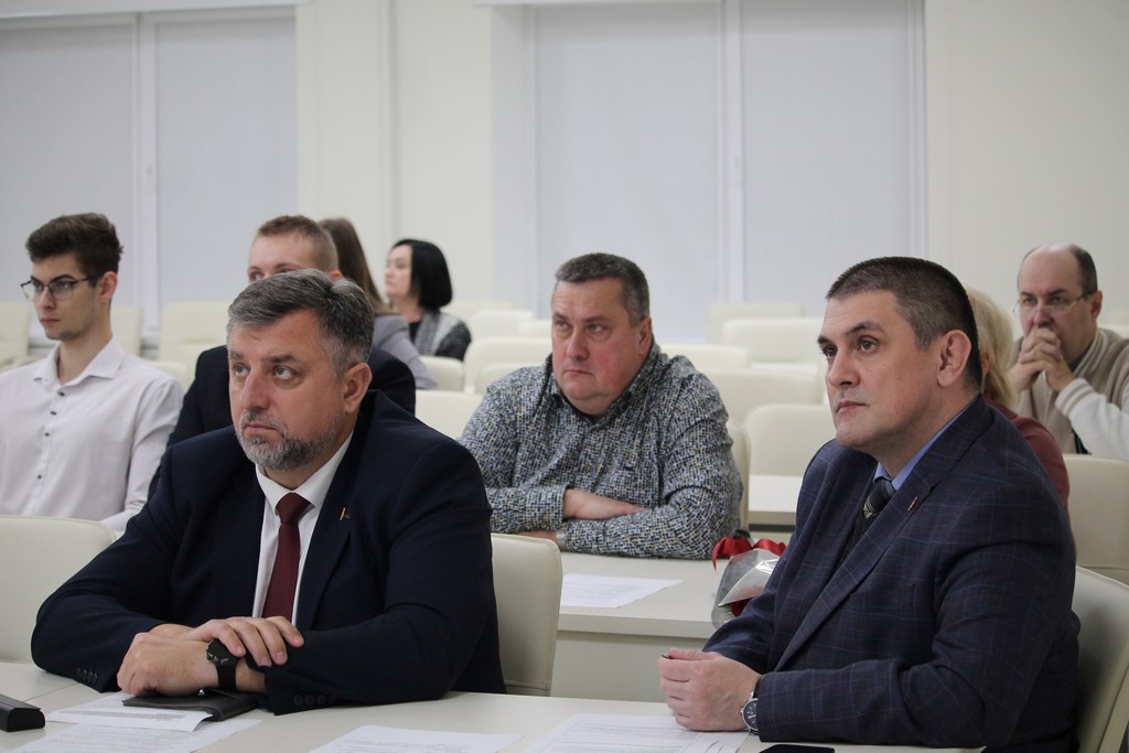 Информацию о представлении кандидатур студентов на назначение премии Гомельского областного исполнительного комитета и премии Гомельского городского исполнительного комитета представил проректор по учебной работе Юрий Никитюк. Кроме того, Юрий Валерьевич рассказал о стажировках профессорско-преподавательского состава в 2025 году.