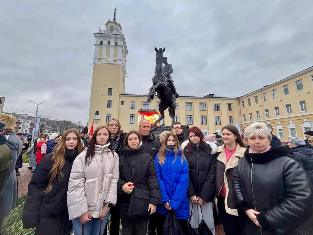 25 ноября на Аллее Героев состоялся городской митинг, в котором приняли участие представители ГГУ. Участники митинга почтили память героев, освободивших город, возложив цветы к мемориалу.
