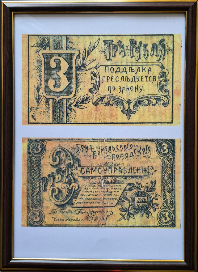 Кстати, интересным является тот факт, что гомельская банкнота 3 рубля в то время в массовом количестве была фальшивой (нарисована от руки синими разведенными чернилами), что отражено в нумизматических справочниках (например, в справочнике классика бонистики Н.И.Кардакова ). Сами гомельские банкноты были отпечатаны в местных типографиях на бумаге плохого качества. И, тем не менее – это наша история.
