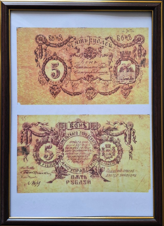 В связи с празднованием Дня экономического факультета в коллекцию факультета мною были переданы копии банкнот 1, 3,5 и 10 рублей Гомельского городского самоуправления и банкноты 5 рублей Гомельского Земства. Для удобства просмотра банкноты показаны с обеих сторон (аверс и реверс) в несколько увеличенном размере.