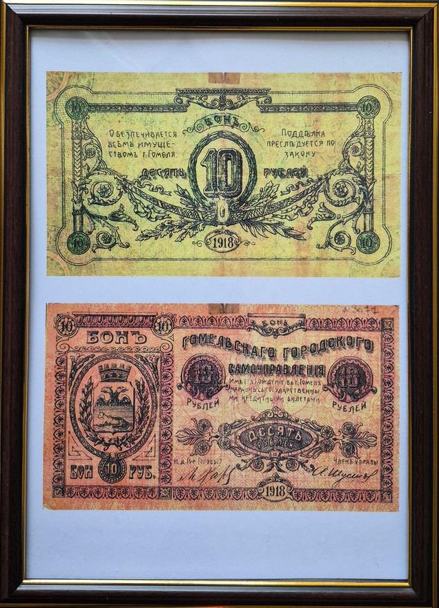 Начался стихийный процесс печатания денежных знаков местными властями и различными организациями. Печатали их практически во всех крупных городах по всей огромной стране. На территории нынешней Республики Беларусь их печатали в Бобруйске, Витебске, Мозыре, Рогачеве и других городах. Гомель в то время территориально относился к Могилевской губернии. Денежные знаки в Гомеле выпускали Продовольственный комитет Полесских железных дорог, Гомельское Казначейство Могилевской губернии, Гомельское Земство и Гомельское городское самоуправление.