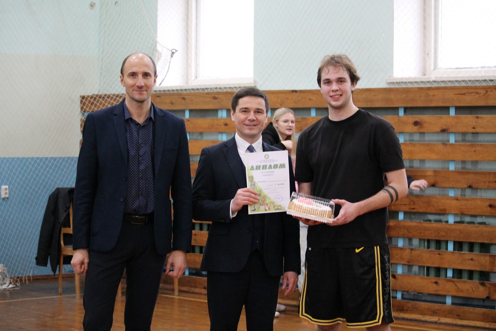 Проректор по идеологической и воспитательной работе Дмитрий Ходанович и начальник спортивного клуба Сергей Кулешов вручили победителям и призерам соревнований дипломы и кубок от спортклуба, а также сладкие призы от профсоюзной организации.