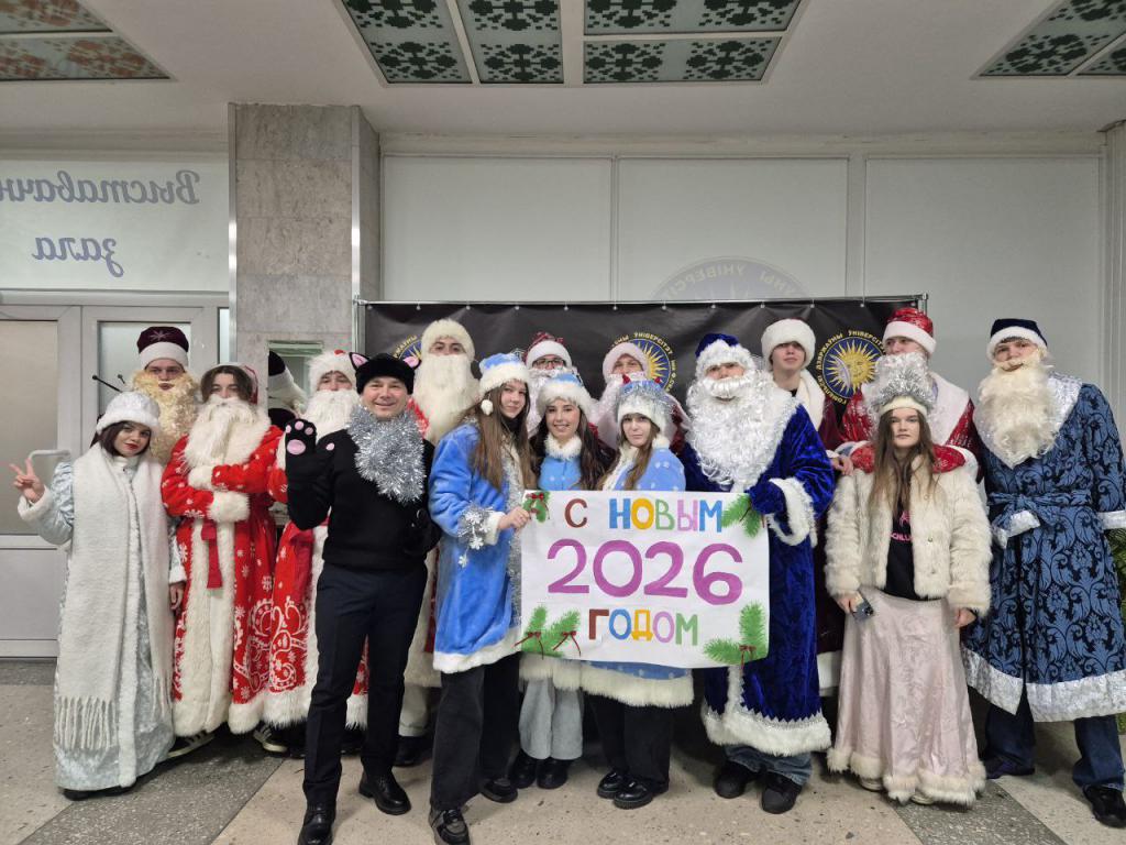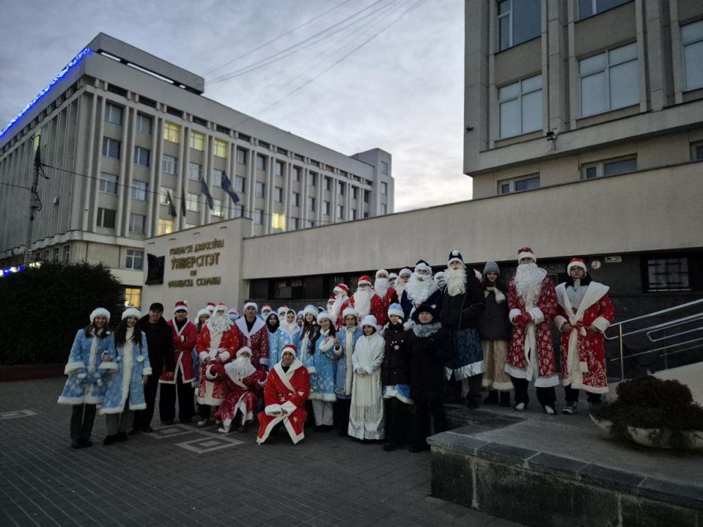 Команда из 50 студентов Гомельского государственного университета имени Ф. Скорины во главе с проректором по идеологической и воспитательной работе Дмитрием Ходановичем, старшим преподавателем кафедры спортивных дисциплин Александром Курако готова к главному новогоднему шествию Дедов Морозов, Снегурочек и сказочных персонажей!
