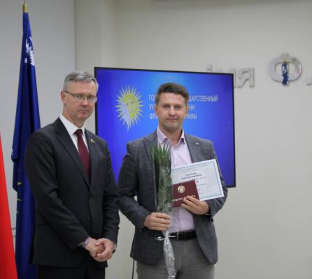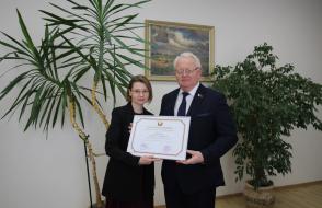 Заседание началось на торжественной ноте: сотрудники ГГУ получили заслуженные награды из рук…
